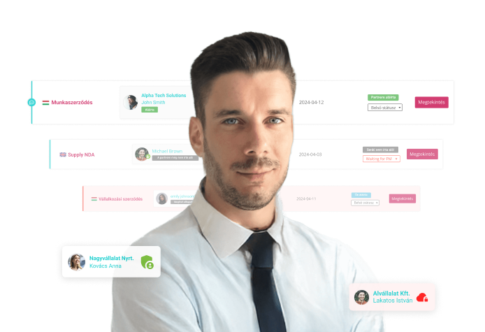 Nincs posta, nincs szkennelés, nincs várakozás — minden lépésről auditált nyom és visszakereshető bizonyíték készül. Ez gyorsítja az üzletet, és teljesen megszünteti a földrajzi akadályokat.